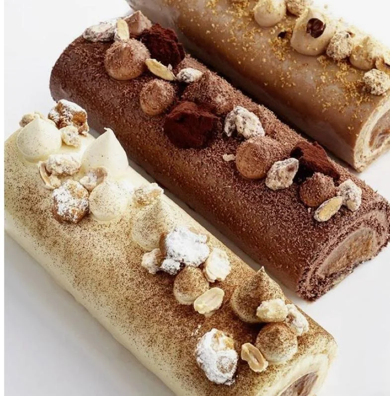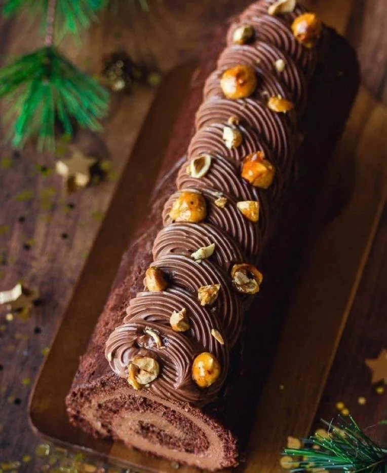 het is opgerolde cake deeg met slagroom vulling en lekkere topping